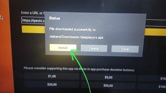 Terminada la descarga, Downloader te va a pedir que se instale la aplicación en este caso SMARTERS player apk.